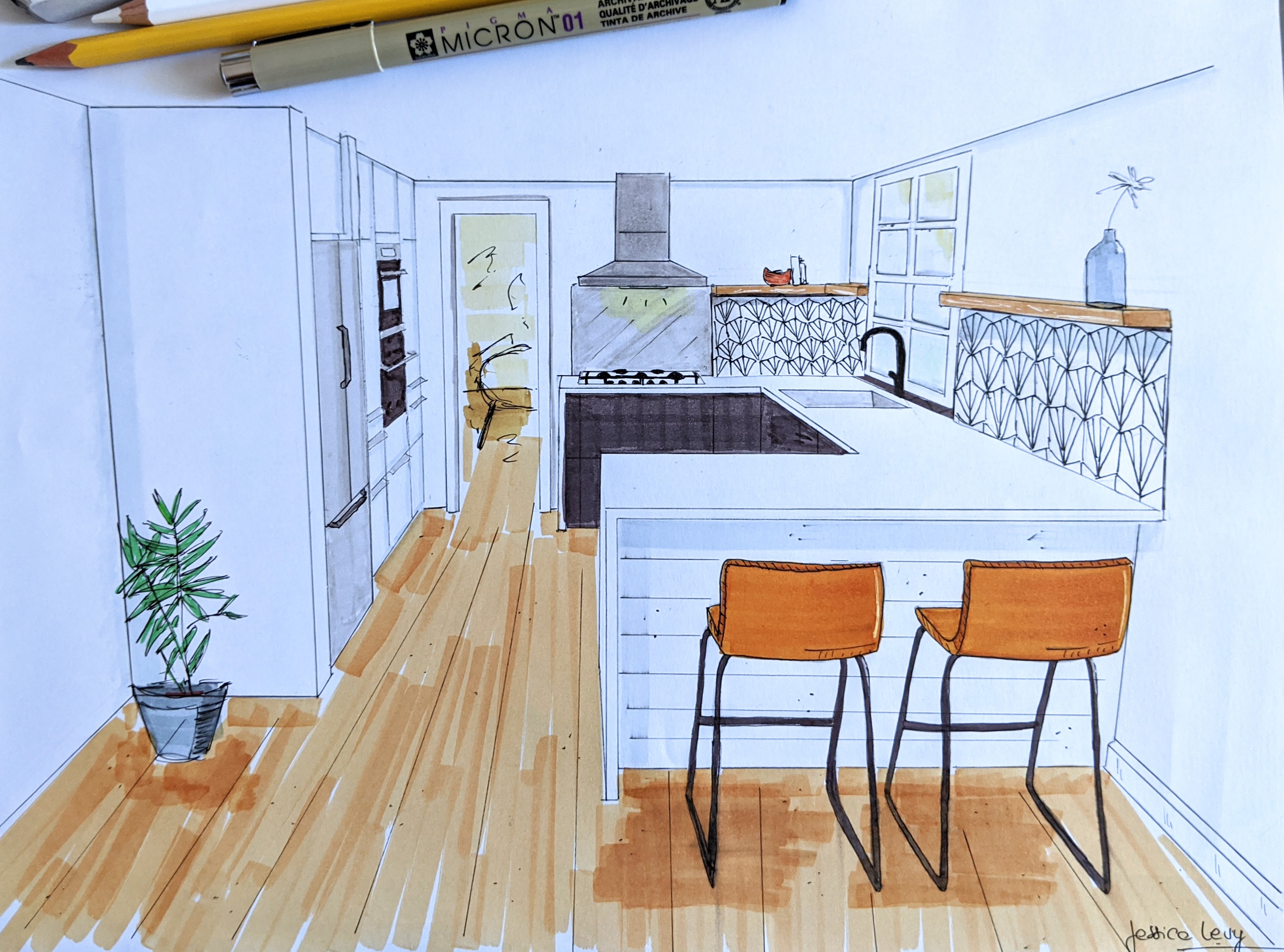 We love hand drawn sketch-up! Drawing is the most immediate way to help our clients visualize their space, to better understand how it will feel.